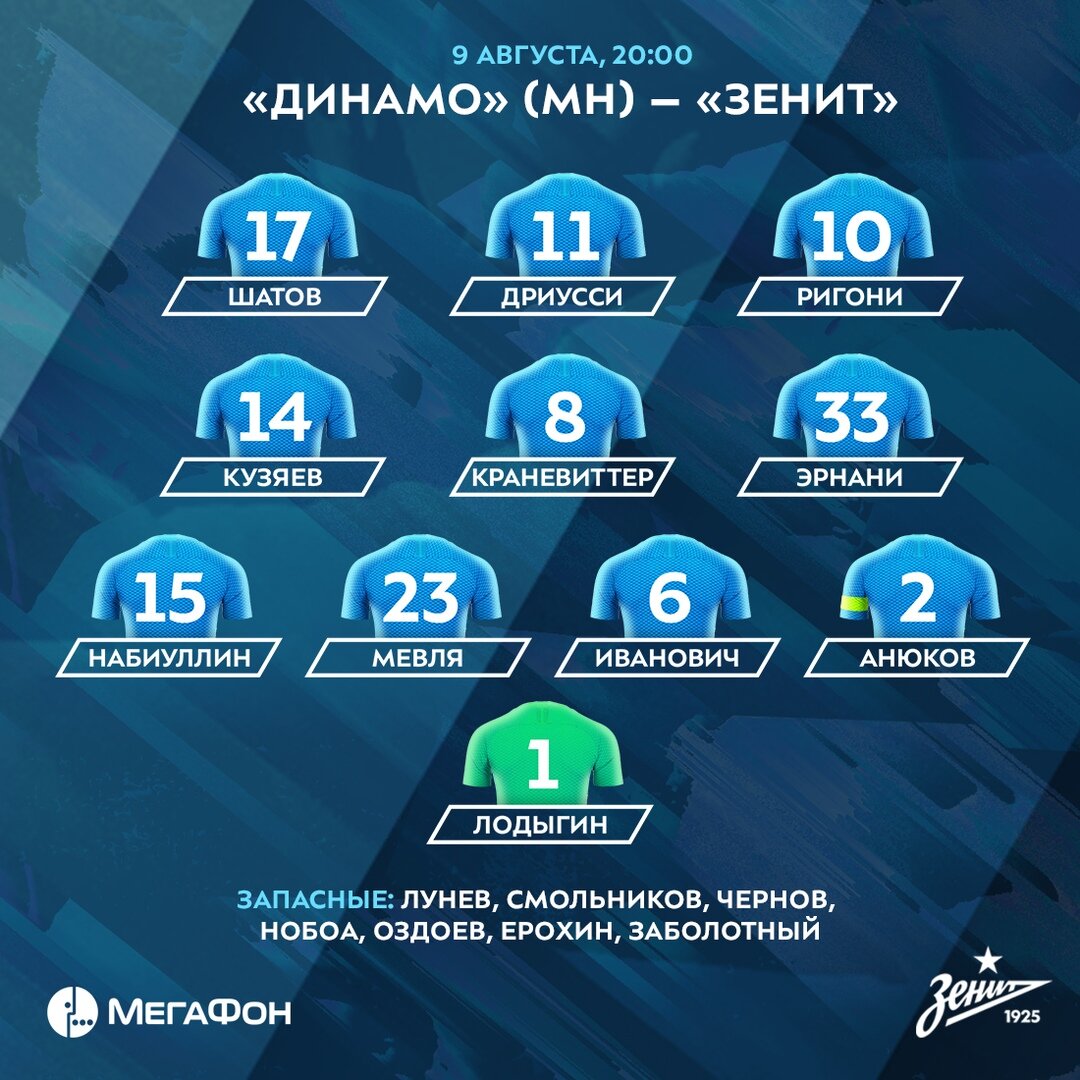 Сергей Богданович выпустил на поле следующий состав.