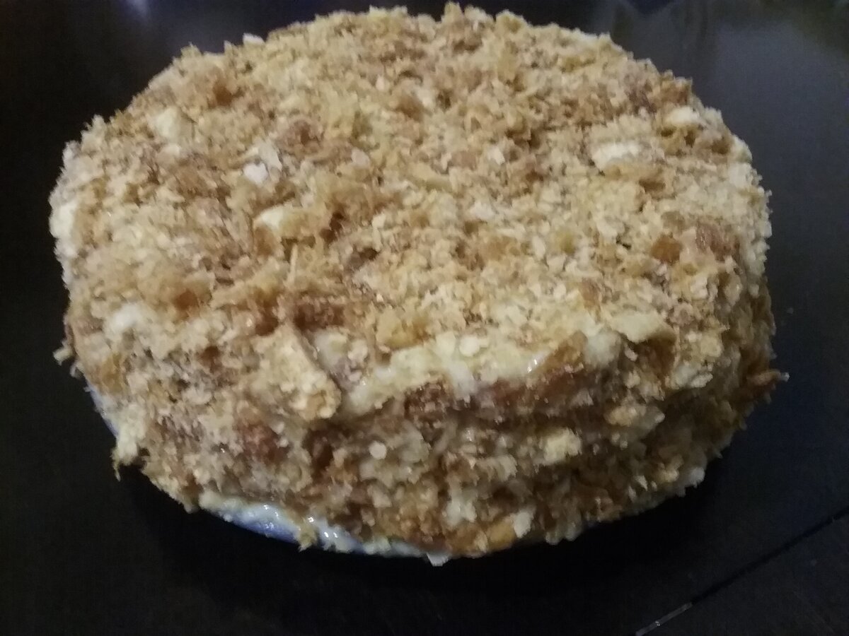 Очень вкусный, настоящий "Наполен" без выпечки! Рецептов много, покажу самый быстрый и всегда удачный! Слушайте любимые песни и готовьте с удовольствием! Самое главное купить свежее печенье " Ушки", иначе ничего не получится. Они должны легко разламываться, хорошо пахнуть и быть красивыми, не очень зажареными. Для приготовления моего торта Вам понадобится вкусный заварной крем и 1 кг печенья "Ушки" ! Все! Больше ничего! Только хорошее настроение! Для приготовления крема необходимо: 2 яйца 120 гр сахара 4 столовые ложки муки 2 столовые ложки крахмала Ванилин 900 мл молока 100 гр сливочного масла Взбейте яйца с сахаром, чтобы сахар полностью растворился . Добавьте 100 мл молока, ванилин, крахмал и муку. Все хорошо перемешайте, чтобы не было комочков. Лучше сразу замешивать в кастрюле. Добавьте остальное молоко и ставьте на средний огонь. Доведите смесь до кипения, все время помешивая, чтоб не пригорело. Как закипит, отставьте и добавьте сливо