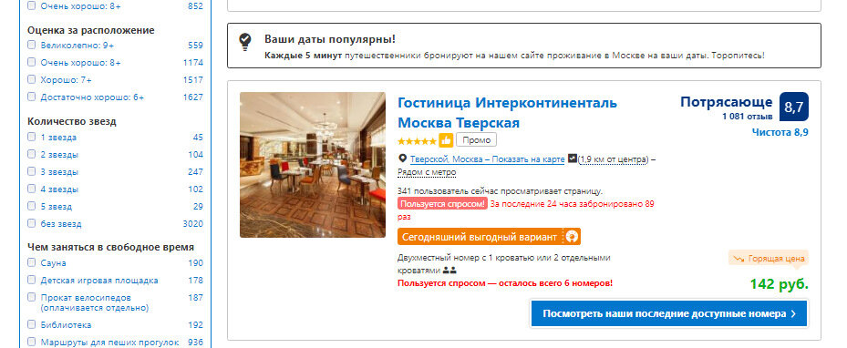 Отключили у нас дома горячую воду. Погоревав немного по этому поводу, решили тогда на время в отель переселиться. Да не простой - а пятизвёздочный! Прикольно же - никогда не жил ни в пятизвёздочных отелях, ни просто в отелях в Москве. Интересный опыт! Не, не подумайте, что у нас от жары крыша поехала, или вдруг мы тут решили побуржуйствовать ни с того ни с сего. Всё дело в то ли акции, то ли сбое системы "букинга", произошедшей вчера вечером. По которой можно было забронировать некоторые крутые отели в Москве и Питере за какие-то совсем смехотворные деньги. Потом уже увидел, что написали про эту халяву всякие вандруки и им подобные. Но я об этом узнал из поста Александра zhzhitel (спасибо ему за то, что поделился) и решил для прикола попробовать.Оказалось, действительно работает! На два дня забронировать не получилось, а на один - вполне. Ещё можно было заказать на 20-е числа, но я уж решил, что нефиг жадничать. А попробовать разок - почему бы и нет? И жене интересно.
