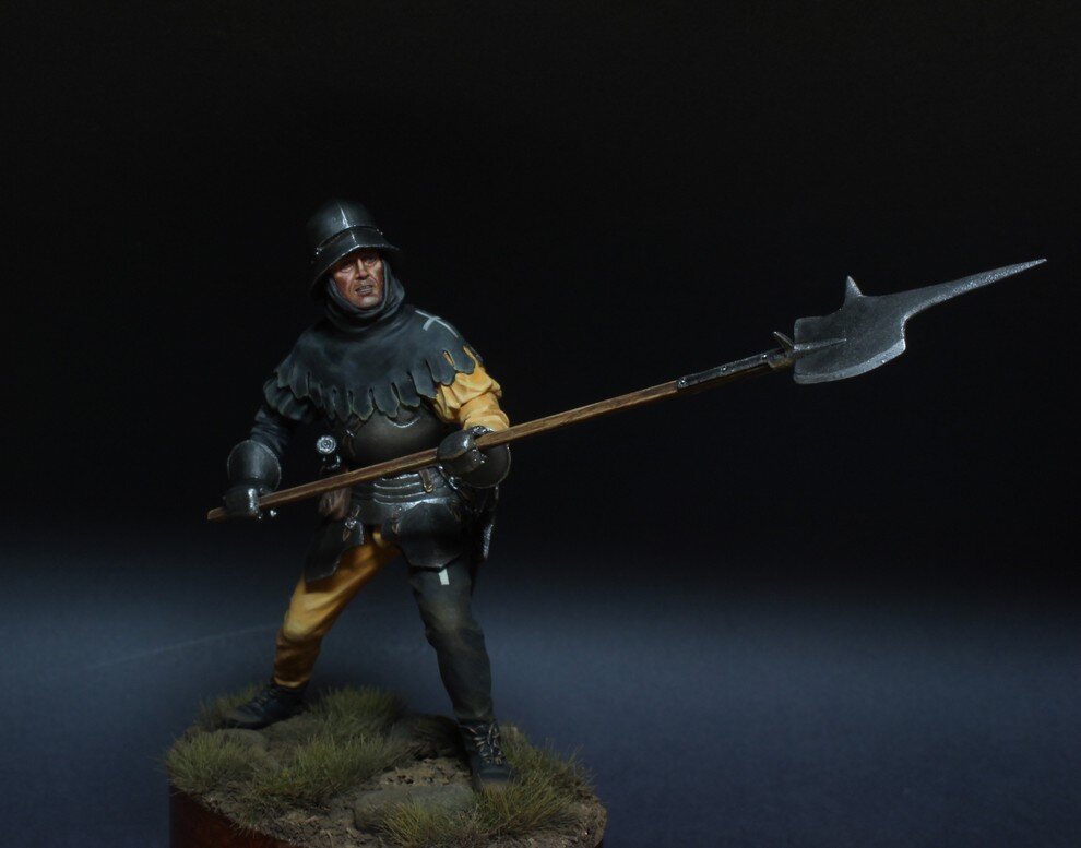 Полуторный клинок или меч-бастард для противоборства с алебардистом тонковат и легковат. Но у вас есть шанс, если вы умеете хорошо наносить "Удар Простака". Слить замах алебарды, уйти в диагональ, зайти во фланг и рубануть его в висок или шею. Но здесь критично, есть на вашем противнике доспехи или нет.