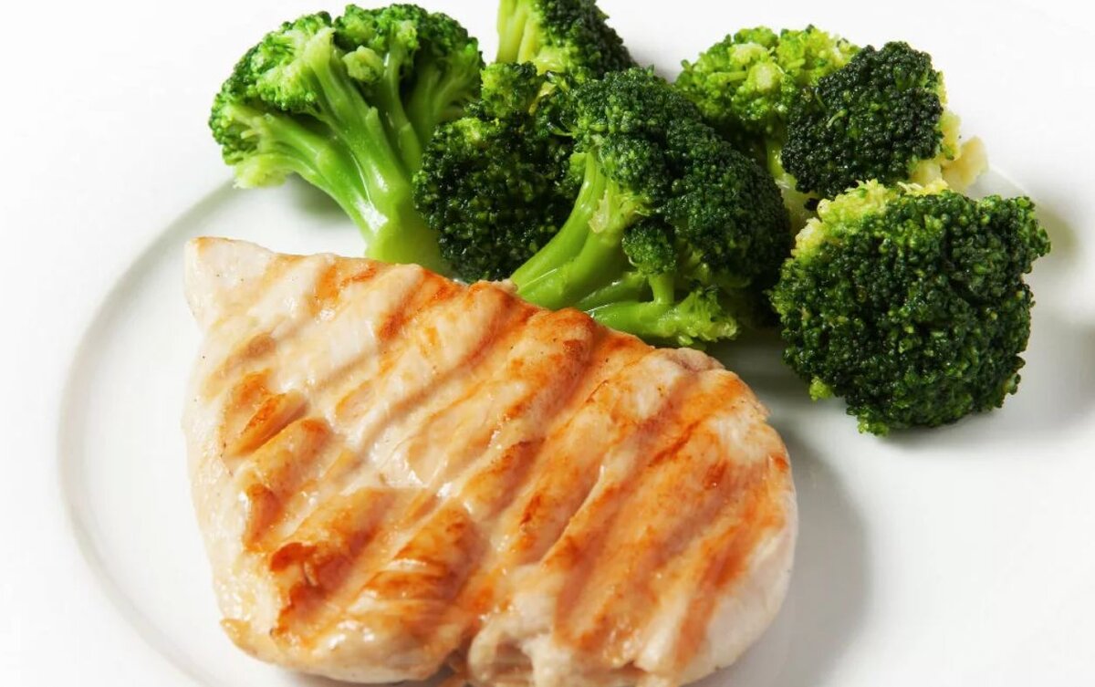 Сочетание белого куриного мяса и отварной капустой брокколи - очень удачное и беспроигрышное сочетание: белок = витамины и микроэлементы и минимум калорий! Ингредиенты: Филе курицы - 2 шт; небольшой вилок капусты брокколи (можно брать заморозку - 0,5 пачки); соль и перчик по вкусу; растительное или оливковое масло; несколько капель лимонного сока. Способ приготовления? Куриное филе разрежьте повдоль на 2 части, сделав его тоньше. Посолите, поперчите и сбрызните лимончиком. Затем, накрыв полиэтиленовым пакетом - отбейте молоточком для отбивных мясо с обеих сторон. Я использую деревянный молоточек. Разогрейте сковороду, налейте масла на донышко и опустите подготовленное филе для обжарки. Сбавьте огонь, дайте соку пропитаться как следует. Как только одна сторона подрумянится - сделайте то же самое с другой стороной. В это время кипящую воду посолить и отварить брокколи, которую предварительно разобрать на соцветия. За пару минут до готовности можно добавить в воду лавровый лист и небольшу
