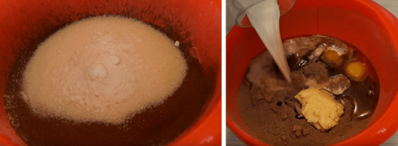 Ингредиенты: Список дан для формы, диаметром 20-24 см. Для большей формы увеличьте пропорционально количество продуктов. Продукты должны быть комнатной температуры. Для крема: ИЛИ Для пропитки (по желанию): Быстрые торты: приготовление. 1. Тесто для торта готовится быстро. Поэтому сразу же включите духовку разогреваться до 170 градусов. Продукты для теста должны быть комнатной температуры, постарайтесь заранее (за 1 час) достать из холодильника яйца, молоко, масло. Если же готовите сразу (как я), то нужно будет подогреть немного молоко и масло, чтобы они стали немного теплыми. Топить масло не нужно! 2. В глубокую миску просейте сразу всю муку (250 гр.). Лучше пользоваться кухонными весами для точности. С весами получится более точно соблюсти все пропорции. К муке просейте какао-порошок (50 гр.). Какао берите обычное, без добавок и сахара. И положите в миску остальные сухие компоненты: 300гр. сахара, пакетик ванилина, немного соли, и полторы чайной ложки соды (гасить