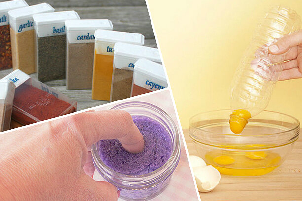 Оказывается, даже тем вещам, которые вы собирались выбросить, можно найти неожиданное применение. Вторая жизнь ненужных вещей: своими руками НАСАДКИ НА ПЫЛЕСОС Если вам знакомо, что такое потерять дома сережку, этот лайфхак изменит вашу жизнь. Возьмите обычный пылесос и натяните на конец его трубы лоскут из старых колготок. После чего пройдитесь по всем углам и под мебелью. Сережка останется на этом импровизированном фильтре. Тот же принцип работает и с мелкими деталями ЛЕГО в детской. Если обычная щелевая насадка потерялась или не влезает в те узкие места, где вы хотите убрать, сделайте гибкую универсальную насадку сами. Туба из-под туалетной бумаги или из-под рулона бумажных полотенец, если нужно забраться глубже. ПУСТЫЕ БУТЫЛКИ И БАНОЧКИ Из баночек для детского питания получается отличный прибор для снятия трудносмываемого лака. Вложите рулончик из губки в баночку и залейте жидкостью для снятия лака. Теперь вы можете погрузить палец отмокать. Приспособление можно использовать нес