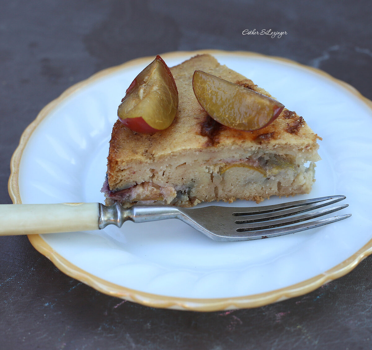 В манку с кефиром добавить соду, стевию и два яйца. Все хорошо перемешать. Затем в тесто положить сливы и осторожно перемешать.