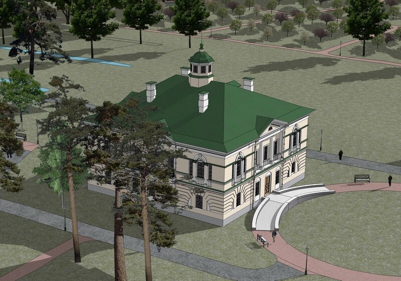 Кроме того, предусмотрены серьёзные дренажные работы, а также возрождение исторического пруда с островом и беседкой со стороны северного фасада главного дома усадьбы.