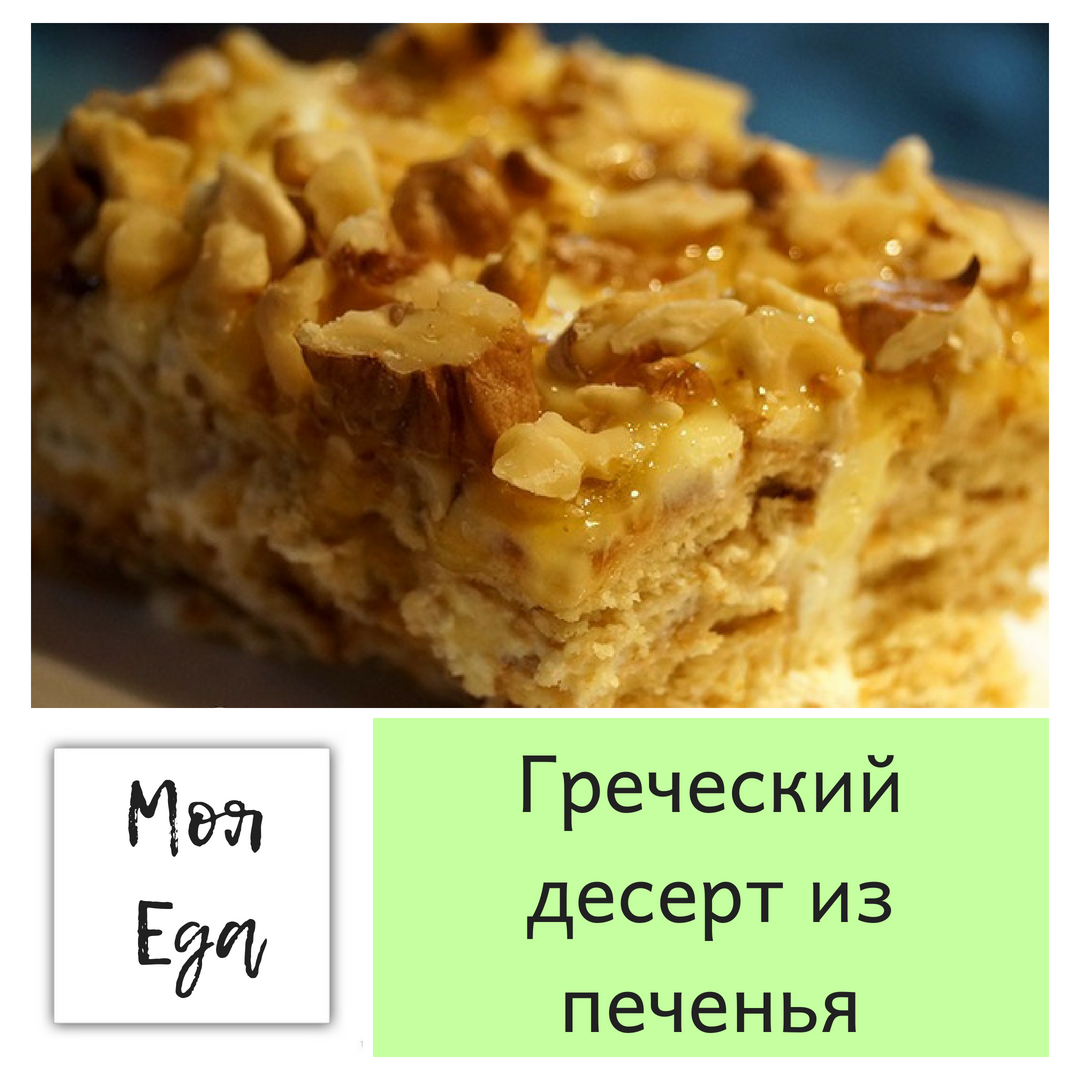 Честно говоря, не знаю, почему десерт носит название Греческий... Вероятно, из-за наличия в составе грецких орехов. А может быть, он родом из Греции. Я нашла его в сети именно под таким названием и так он и прижился у меня. Рецепт очень простой. Отлично подойдет тем, кто готовить особо не умеет, а вкусняшку сделать хочет. Здесь минимум ингредиентов и хлопот и всегда хороший результат. Нам понадобится: Приготовление: Орехи рубим ножом или в блендере не очень мелко. Не обязательно брать именно грецкие орехи, подойдут любые ваши любимые. Сметану смешиваем с сахаром, нужно, чтобы сахар растворился. Лучше сахар добавлять постепенно и пробовать на вкус. Печенье ведь тоже сладкое, не забудьте об этом. Десерт можно собирать в квадратной или прямоугольной форме, а можно выкладывать на плоской тарелке. В любом случае, на дно формы или тарелки выкладываем немного сметанного крема, распределяем его тонким слоем. Затем нужно прикинуть, как укладывать печенье, сколько получится слоев и сколько пе