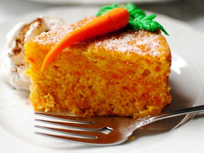 Итого на 100 грамм 86 ккал Б/Ж/У 5.9 / 4.1 / 6.4 Ингредиенты: 250 гр моркови 4 ст л овсяных отрубей (смолоть или купить мелкие) 3 яйца сахарозаменитель 1 ч л молотой корицы 1 ч л разрыхлителя цедра одного лимона изюм - опционально Приготовление: Разогреть духовку до 180 гр. Отделить желтки от белков, смешать желтки и сахарозаменитель, корицу, отруби, разрыхлитель, тертую морковь и цедру лимона. Морковь трите на самой мелкой терке. Взбить белки в густую пену (важно) и добавить к желткам, должна получиться жидкая смесь. Выложить смесь в форму и выпекать 45 мин (или до готовности). Дать постоять пару часов в холодильнике. Кушать лучше холодным. Приятного аппетита!