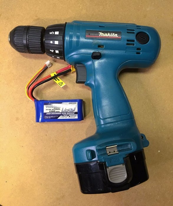 У меня есть несколько старых аккумуляторных электроинструментов, и все они в хорошем рабочем состоянии. Проблема в том, что аккумуляторные батареи в них необходимо заменить так как они очень быстро разряжаются, особенно в холодную погоду. Платить за батареи, которые стоят почти столько же, сколько и новый инструмент, я не хотел, так же как и отказываться от совершенно хороших инструментов. В большинстве современных беспроводных инструментов используются литиевые батареи. Мы так же будем использовать недорогие литий-полимерные блоки LiPo. Шаг 1: Инструменты и материалы Для работы нам потребуется: Инструмент для зачистки проводов, кусачки, паяльник, пилка,провода, термоусадочные трубки сам аккумулятор Turnigy 1300mAh 4S 45C Lipo Pack, разъемы XT60, контролер состояния батареи HobbyKing™ Lipoly Low Voltage Alarm, и зарядное устройство для аккумулятора Hiyzer X1 Multi-Charger Шаг 2: Открываем батарейный отсек Удаляем старый аккумулятор и помещаем внутрь новый. Аккумулятор необхо