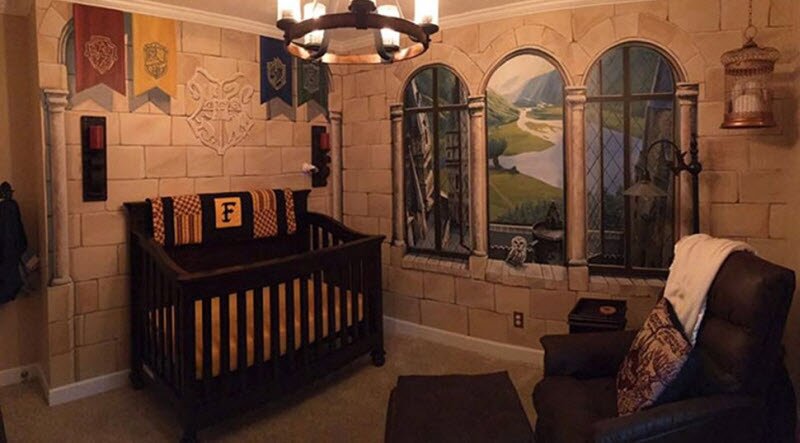 Молодые родители из Иллинойса Кейси и Кейси (да, их имена звучат одинаково, только пишутся по-разному) создали волшебную детскую комнату для своего семимесячного сына. Отец ребенка, который оказался большим фанатом Гарри Поттера, загорелся этой идеей, еще когда его жена была беременна, и она согласилась превратить комнату будущего малыша в один из залов Хогвартса. На разработку дизайна детской понадобилось около трех месяцев. Декорированные стены, одеяла, украшенные изображениями из фильмов о Гарри Поттере, все семь книг и другие магические аксессуары окружают счастливого ребенка. Его мама выложила несколько фотографий детской в Facebook, и они набрали более 5,5 тысяч лайков.