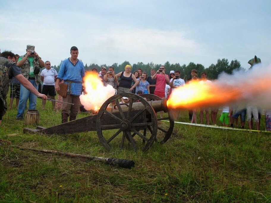 Начнем с артиллерии. На площадке фестиваля присутствовала одна дульнозарядная пушка во вполне рабочем состоянии. За, если не ошибся, тысячу рублей можно было самому зарядить орудие под руководством опытного пушкаря, произвести выстрел, а потом пробаннить ствол. Особо много желающих почему-то не находилось. Но вот от зрителей отбою не было.