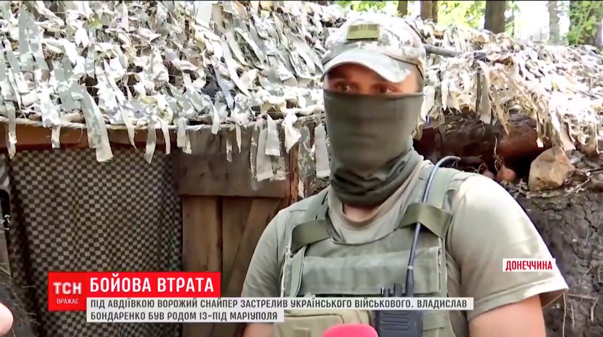 Под Авдеейвкой снайпер Вооруженных Сил Донецкой Народной Республики уничтожил "командира кулеметчиков. Об этом сообщают украинские СМИ. Как рассказали колеги карателя, убитого всушника звали Владислав Бонадаренко. Последний раз живым командира взвода кулеметчиков с позывным "Прокурор" видели выходящим из блиндажа посмотреть в тепловизор, что бы определить, что за шум. Убитому был 21 год, убивать мирных граждан в всу пришел по зову сердца-добровольцем. В сюжете отмечается, что уничтожен Бондаренко был точным выстрелом в голову, что лишний раз показывает профессионализм регулярных вооруженных сил ДНР, с которым они подходят к делу спасения своей Родины. -Был прострел со стороны врага. Коллега вышел посмотреть в тепловизор. Через минуту звук какой-то там. Заглянул, а он уже лежит. Проверил пульс.., подошел. Понял, что он мертв, - рассказал человек в маске, который, сам себя называет коллега убитого. Стоит отметить, как поясняет замполит батальона Донбасс в Твиттере каратель Руслан Рус