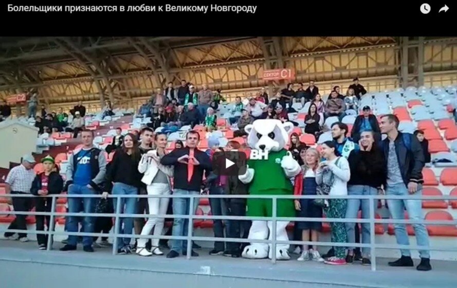 На стадионе «Электрон» болельщики объединились с ростовой куклой медведя, чтобы признаться в любви к своему городу – Великому Новгороду. Кроме того, сегодня на площади Победы Софийской новгородцы устроили небольшой импровизированный флешмоб и также признались в любви к городу. Напомним ранее мы сообщали о том, что в Великом Новгороде продолжаются перфомансы. Так, например, в торгово-развлекательном центре «Мармелад» покупатели танцевали хастл. Читать в первоисточнике.