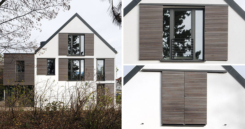 Расписные и резные ставни были частью нашей культуры. Теперь дома со ставнями большая редкость. Однако некоторые архитекторы снова обращаются к этому элементу декора. В этом доме ставни выполнены из дерева и сочитаются с сайдингом. Выглядит как внешние жалюзи. Этот дом находится в Германии. А как вы думаете приживется ли новый тренд у нас? Понравилась идея? Поставьте архитектору большой палец.