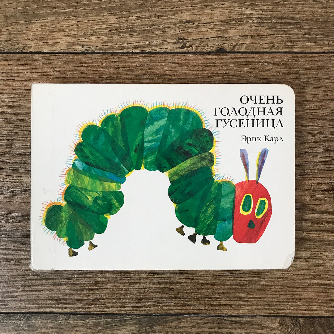 Давно пора было написать про самую любимую книгу моего сына. Я знаю, среди моих друзей уже есть её поклонники, так пусть нас станет больше. Это прославленная во всем мире «Очень голодная гусеница» Эрика Карла. Мне сразу понравилось её весёлое название. А когда книга попала мне в руки, я удивилась рисункам. Они очень простые, стильные и необычные. Оказалось, что Эрик Карл создал свою технику — коллажа из папиросной бумаги, которую складывает в несколько слоёв и раскрашивает, придавая ей нужные оттенки и фактуру. С «Очень голодной гусеницей» можно выучить фрукты, их цвет, счёт, дни недели и увидеть её превращение в бабочку. К тому же гусеница оставляет настоящие дырочки в еде! Книга постоянно попадает в топ лучших детских книг и лучших детских книг на английском языке — выпущено более 30 млн экземпляров на почти всех возможных языках. А ведь мы могли бы тоже читать и любить её в детстве, потому что Эрик Карл создал «Очень голодную гусеницу» ещё в 1969 году. Но в России ее выпустили толь