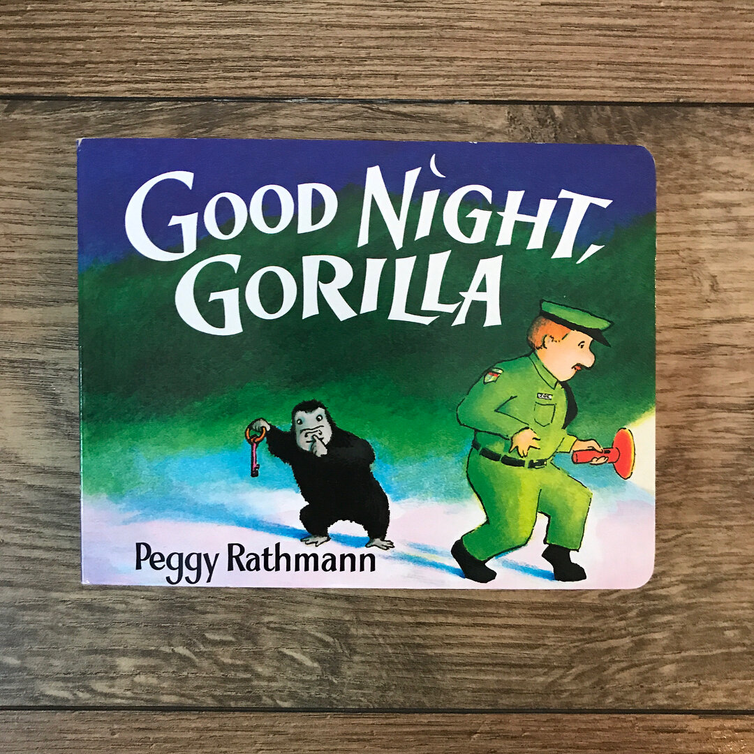 Некоторые очень хорошие детские книжки, которые советовали для малышей русские блогеры ещё 2-3 года назад, исчезли. И я решила купить их на языке оригинала. Так у нас появилась "Спокойной ночи, Горилла" Пэгги Ратмэн. Книга, которая радует меня яркими красивыми рисунками и забавной историей. Усталый служитель зоопарка обходит зверей и желает им спокойной ночи, особо не глядя, поэтому не замечает, что горилла стянула у него ключи. Служитель проверяет каждое животное и говорит «Спокойной ночи», а следом веселая горилла открывает ключом все двери. Сначала слона, потом льва, затем гиену и так далее. И вот уже все животные идут за сонным служителем зоопарка домой, где начинается самое интересное. Когда жена служителя желает ему спокойной ночи, то слышит в ответ много разных голосов. Очень смешно нарисованы её испуганные глаза в темноте (Серёжа в восторге именно от этой страницы). И лицо, когда она включает свет. Лицо гориллы тоже прекрасно — посмотрите на эту улыбочку. Служитель продолжает с