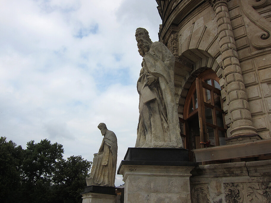 В 1890-м работа закипела. Но задумка оказалась не простой, на строительство и отделку церкви Знамения понадобилось около 10 лет. За это время Петр I взял Азов, поучился в Европе, провел военные реформы, построил флот и решил строить новую столицу. А в Дубровицах неизвестные мастера трудились с утра до вечера, работа не прекращалась даже зимой, и как так вышло, что никто не запомнил, не сохранил имён этих людей? Есть разные предположения, но всё как-то расплывчато – скорее всего, совместное производство наших то ли с немцами, то ли с итальянцами или швейцарцами. Кто скульптор? Кто архитектор? Не понятно. Храм получился такой необычный, что трудно найти что-то похожее, построенное в то же время, чтобы установить автора. Эта необычная красота с западным уклоном не пришлась по душе патриарху Адриану, он ни в какую не хотел освящать уже готовую церковь. Удалось это сделать только после его смерти в 1704 году, зато по первому разряду – на освящении присутствовал Петр с царевичем Алексеем и его свита, позвали жителей всех окрестных деревень и гуляли несколько дней.