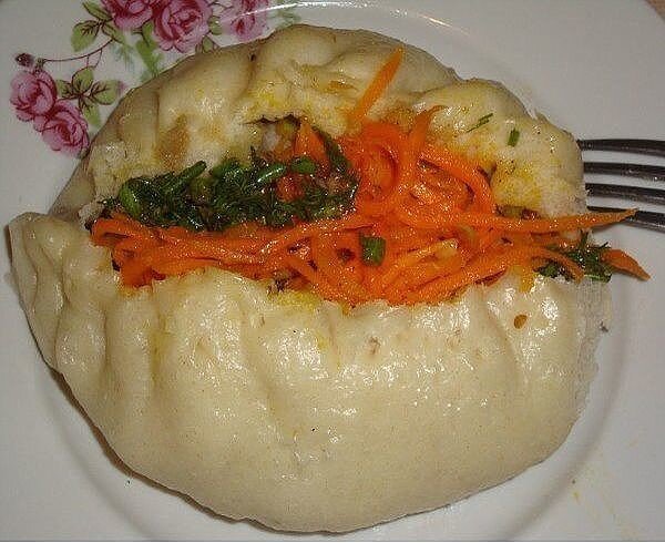 Пигоди-это корейские открытые пирожки. Никогда не думала, что это такая вкуснятина. Недавно нашла этот рецепт в ОДНОКЛАССНИКАХ. Приготовила-получилось очень вкусно. Приготовьте и вы. Вначале надо приготовить тесто для пигоди: Соединить 2 стакана молока с 1 ложкой сахара, 1 ч. ложкой соли, 20 гр. дрожжей и 1 кг муки. Замешиваем тесто и ставим подниматься. Пока тесто поднимается-приготовим начинку: берём 500 гр. куриного филе и режем на кусочки. Затем шинкуем 500 гр. капусты (её нужно слегка посолить и помять), мелко нарезаем 3-4 луковицы. Капусту и лук добавляем к мясу, солим, перчим-по вкусу, добавляем 2 ч. ложки кориандра и хорошо перемешиваем. От готового теста отрываем шарики, лепим пирожки с начинкой и укладываем в мантышницу. После закипания готовятся 40 минут. Когда пирожки приготовились-раскрываем их по шву, где их слепливали, закладываем салат "Морковичи" и поливаем кетчупом. Кушайте на здоровье! ПРИЯТНОГО АППЕТИТА! ПОЖАЛУЙСТА! ПОДПИШИТЕСЬ НА МЕНЯ! ОЧЕНЬ ВАС ВСЕХ ПРОШУ!