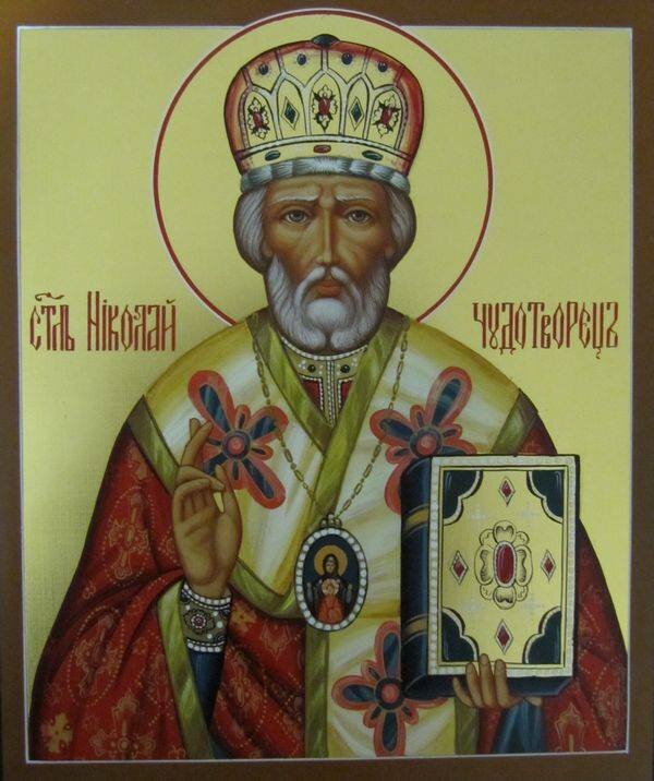 Радуйся, во одеяниях ангельских рожденный, якоже во плоти чист; радуйся, и водою и огнем крещеный, яко же во плоти свят. Радуйся, рождением своим родителей удививый; радуйся, силу душевную абие по рождестве явивый. Радуйся, саде земли обетования; радуйся, цвете Божественнаго саждения. Радуйся, лозо добродетельная винограда Христова; радуйся, древо чудоточное рая Иисусова. Радуйся, крине райского прозабения; радуйся, миро Христова благоухания. Радуйся, яко тобою отгонится рыдание; радуйся яко тобою приносится радование. Радуйся, Николае, великий Чудотворче, радуйся, Николае, великий Чудотворче, радуйся, Николае, великий Чудотворче!