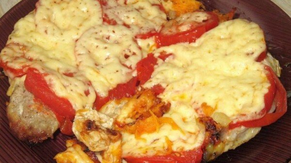 На 100 гр. - 100,33 Ккал. Белки - 15.33 гр. Жиры - 2,39 гр. Углеводы - 2,56 гр. Ингредиенты: Приготовление: 1) Отбейте филе на тоненькие пласты. Яйцо взбить, добавить к курице, посолить, поперчить и перемешать. Помидор порезать кружочками. Лук порезать кольцами. Сыр протереть на крупной тёрке. 2) Противень смазать растительным маслом (можно на противень положить пергаментную бумагу). На противень положить первым слоем курицу. Вторым слоем мяса по-французски будут кольца лука. На лук положить кружочки помидоров. Помидоры смазать йогуртом. Последним слоем будет тёртый сыр. 3) Запекать в духовке до золотистого цвета сыра. Приятного аппетита!)