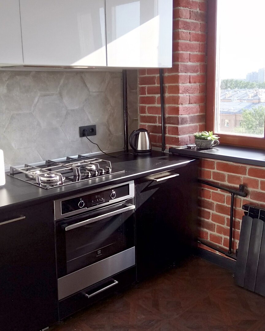 Живые фотографии кухни в стиле Лофт, сделанной своими руками, в обычной кухне 9 кв.м.