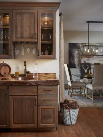 Кантри – это настоящая находка для осеннего декора кухни. Сам по себе этот стиль уже отличается теплым настроение начала осени. В стиле преобладают простые, но практичные материалы и колоритные элементы. Веточки с желтыми листьями и гроздья ягод отлично впишутся в интерьер, дополнят его и придадут особенную изюминку.