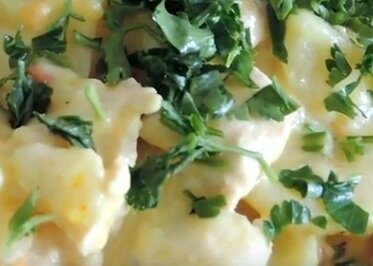 Здравствуйте, мои дорогие любители вкусной еды! Сегодня будем готовить почти диетическое блюдо. Очень легкое в приготовлении. Нам понадобится: 400 грамм грудки индейки (или замените на другую часть, но без костей); 4-5 картофелин; 1 головка репчатого лука; 1 небольшая морковь; 200 грамм сливок 20%; 2 ст. ложки соуса майонезного «Пармезан»; Приправы: специи для вторых блюд, перец, куркума, травы. 2 ст.ложки масла растительного; соль по вкусу; 120 мл воды. Режем лук, трем на крупной терке морковь, разогреваем сковороду, наливаем масло и слегка обжариваем Добавляем картофель, нарезанный небольшими кубиками. Подливаем воду, солим и даем слегка потушиться Режем грудку индюшки мелкими кубиками и выкладываем в сковороду. Накрываем крышкой и тушим минут 10. Затем добавляем сливки 15, 20 или 30% по желанию. Чем жирнее, тем вкуснее. Чем меньше процент жирности, тем более диетическое получится блюдо. Сразу же добавляем соус майонезный «Пармезан» от «Astoria» или другой, который есть у вас.