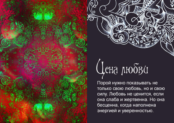 Иногда сложно бывает принять решение. Сложно просчитать варианты или, бывает, разумным кажется одно решение, а хочется совсем другого... Но решать что-то нужно. В такие моменты очень полезными бывают интуитивные и метафорические карты. Ведь мы знаем на самом деле, что будет лучшим для нас, интуитивно чувствуем. Интуиция и подсознание всегда подсказывают нам, каковы наши истинные цели и устремления и как мы можем реализовать их. Просто иногда стереотипы или чувство долга не дают их увидеть. Однако если заглянуть в себя, то сразу все становится ясно - и чего мы хотим, и как это получить. Так что сейчас мы зададим себе несколько вопросов и ответить на них нам помогут метафорические карты. После каждого запроса вы увидите карту для ответа на него. Не нужно воспринимать их буквально - слушайте свои ощущения, ассоциации. О чем говорит карта? Какие мысли и образы приходят на ум? Что вы в ней видите в связи с запросом? Все карты из колоды метафорических карт "Напрямую", которая как раз подх