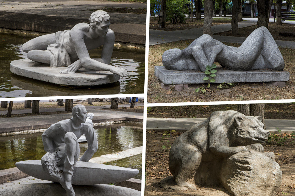 Гуляя по Алматы, в поисках питьевого фонтана, я совершенно случайно забрел на парк, в котором была просто невероятная концентрация различных скульптур. Как оказалось, что недалеко от него находится здание академии искусств им. Т.К. Жургенова, а фигуры в парке являются работами студентов и преподавателей. Здание самой академии: Памятник заслуженному деятелю искусств Казахстана Аскару Токпанову: Скульптуры, представленные в парке, очень разнообразны, например, изображают различных животных: Другие же изображают куда более высокодуховные вещи, например, материнство: Скульптуры, символизирующие музыку: В ожидании свидания: Казахская девушка с яблоком на блюде: Она же в шарокотом: Мальчик, сидящий на черепахе: Тут, как мне кажется, что-то сексуальное, но или мой извращенный мозг воспринимает это так: На заднем плане точно девушка, снимающая с себя одежду: Влюбленность: Кстати, питьевого фонтана я тут не нашел, хотя мои карты убеждали, что он тут есть. Пришлось просто остыть, посидев у фонта