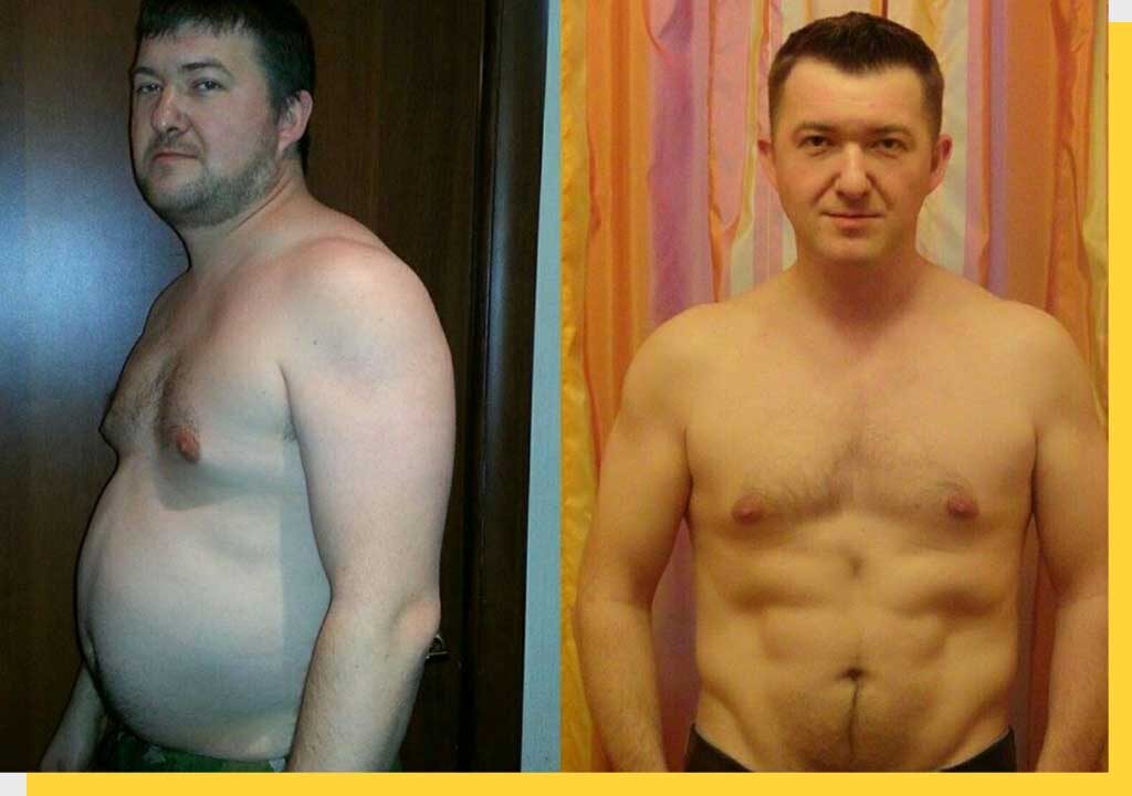 Владимиру 39 лет. 4 года назад он за 2 месяца сбросил 27 кг. Со 127 до 100 кг, при росте 190 см. «Все началось с желания похудеть и денежного спора с друзьями» – рассказывает Владимир. С первого дня на пути к своей цели Владимир начал посещать спортивный зал: ходил два раза в день – утром и после обеда. В основном тренировки состояли из анаэробных нагрузок – бег, езда на велотренажере. «Из рациона было исключено все, что я любил: сладкое, соленое, жареное, мучное, алкоголь и этот список можно продолжить 20 категориями продуктов» – говорит Владимир. Основной рацион составляли овощи, творог, куриная грудка на пару. «Я даже пил воду, обогащенную кислородом» – вспоминает наш герой. Диета закончилась. Все вокруг были в шоке, а Владимир доволен, что наконец-то смог показать всем свою силу воли и влезть в свой свадебный костюм. Но с правильным питанием было покончено на следующий же день. «Я вернулся к прежнему режиму питания, начал еще больше налегать на свое любимое пиво и результат не за