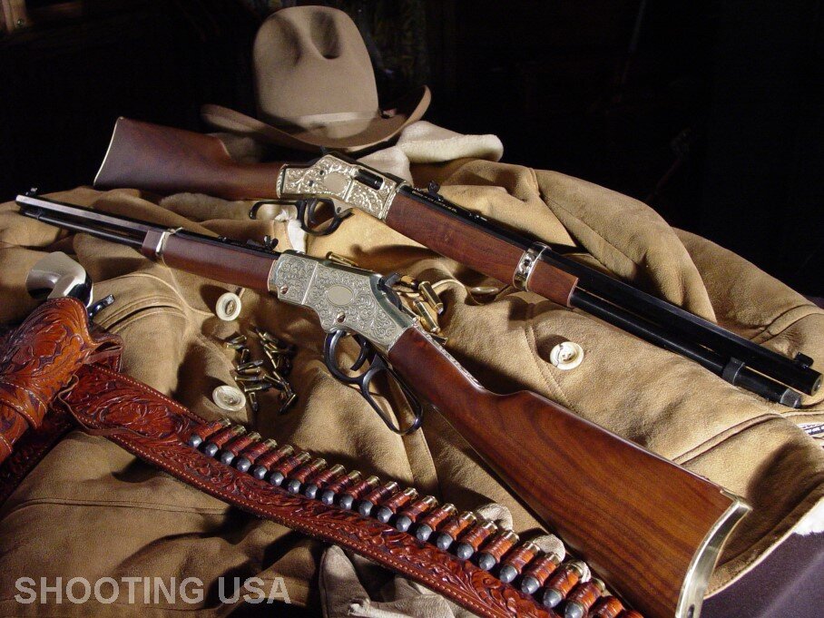 Культовое американское оружие, которое почти любой человек сможет опознать и с уверенностью отнести к Дикому Западу. История этого вида оружия началась с середины 50-х годов 19 века. С пистолета «Волканик» фирмы «Смит и Вессон» А было так, что 14 февраля 1854 года некий американец по имени Бенджамин Генри получил патент на… пистолет, у которого пули (и они же суть выстрелы, то есть безгильзовые боеприпасы!) находились в трубчатом магазине под стволом, а подавались в ствол при помощи специального рычага, конструктивно объединенного со спусковой скобой. Изначально пистолеты не пользовались большим спросом из-за низкой скорости полета пули. С изобретением гильзового патрона дело пошло на лад. Появились различные модели многозарядных винтовок со скобой Генри под разные калибры, которые выпускала фирма Winchester Repeating Arms Company. В том числе и гладкоствольные. Одну из таких вы могли видеть в фильме "Терминатор" На самом деле роль винтовок с рычажной перезарядкой, силь