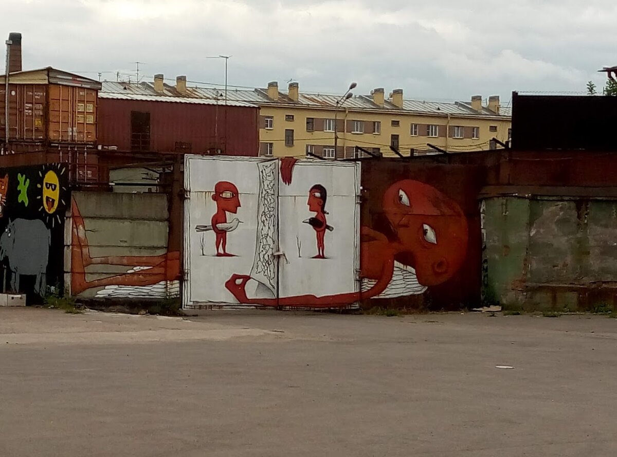 Продолжаю публикации фотографий разнообразных чудесных мест в Питере. В данном случае, работа художника, в прямом смысле, скрыта от глаз широкой публики под надежной охраной. Т.к. находится данная работа на территории одной из Питерских промышленных площадок с пропускным режимом. Питерская специфика, на мой взгляд, наличие таких вот скрытых жемчужин: во дворах, парках, в городской застройке и, в том числе, в промзонах, раскиданных по всему широкому заводскому поясу, окружающему исторический центр.
