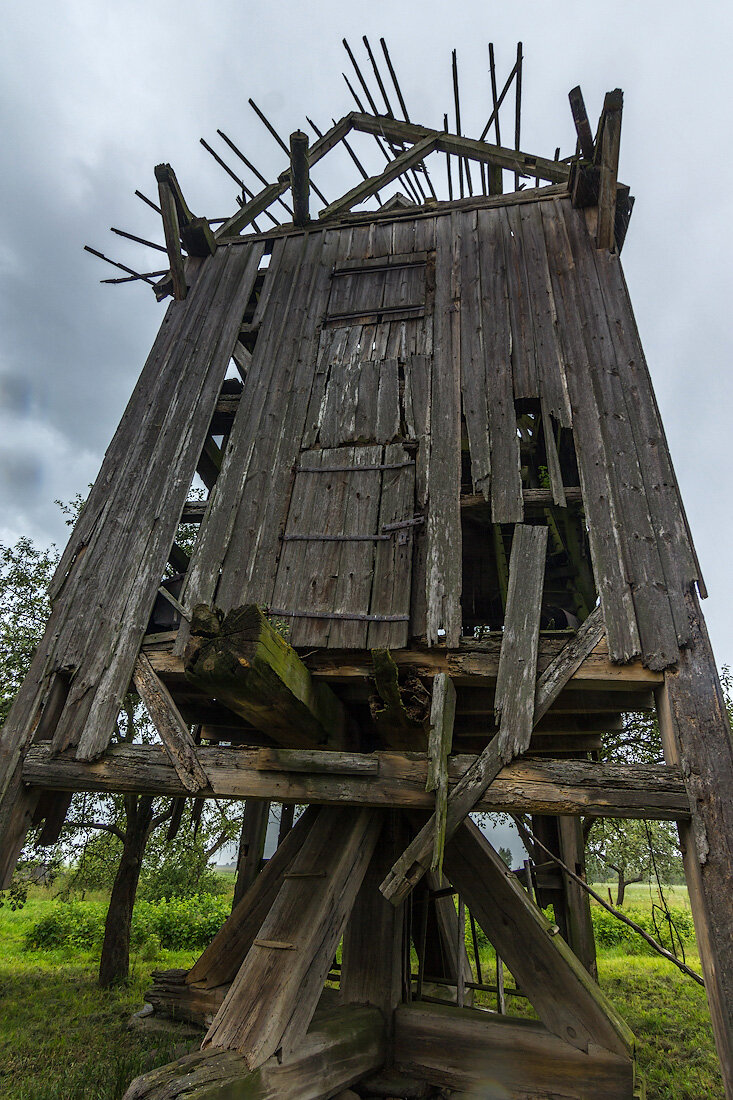 Мельница покоится на мощных деревянных опорах. Трудно представить себе деревья, из которых вытесали эти балки полуметровой толщины.