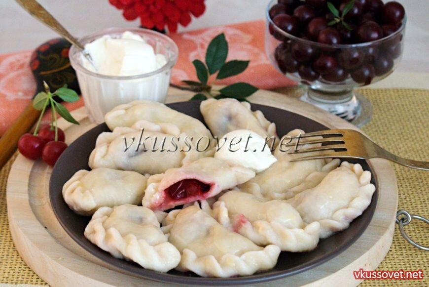 Как приготовить: http://vkussovet.net/1422-vareniki-s-vishnej.html