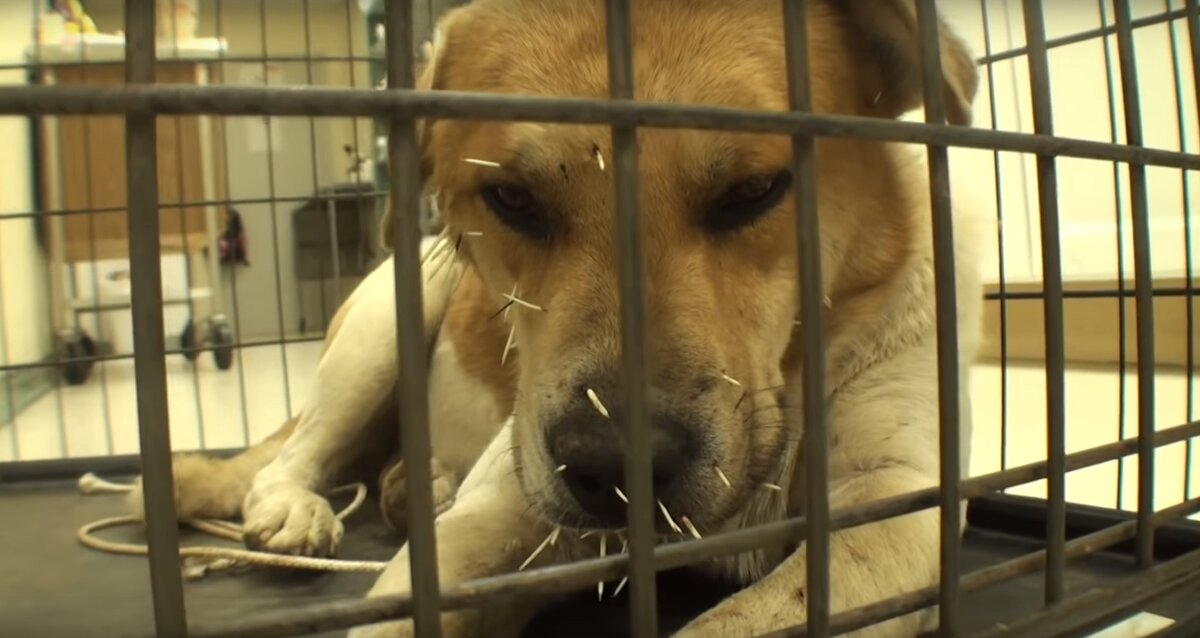 К дому Ребекки Чествуд часто приходил бездомный пес, которого она подкармливала. Однажды утром она обнаружила его с мордой, полной иголок дикобраза. Очевидно, пес и дикое животное столкнулись ночью. У Ребекки не было денег на лечение пса, и она доставила его в ближайший приют, чтобы ему оказали помощь. Ребекка также сказала, что пес не очень дружелюбен, и не доверяет людям. Врачи в приюте осмотрели собаку и пришли к выводу, что особенных заболеваний нет: основную боль ему причиняли иглы дикобраза, застрявшие в морде. Также он был обезвожен и очень устал, почти не сопротивляясь тому, что с ним делают. В случае этого пса план был простым: отправить его под наркоз, вынуть иглы из морды, кастрировать и отправить на курс социализации в приемную семью, чтобы впоследствии отдать его в добрые руки. Когда пес уснул под наркозом, ветеринары провели тщательный осмотр: иглы впились глубоко под кожу, а некоторые были даже в пасти животного и на языке. Понадобилось около часа для того, чтобы удалит