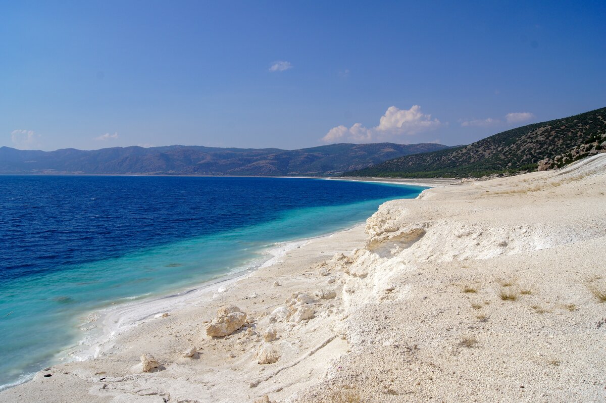 Озеро Салда. Это одно из чудес света, про которое вообще-то мало кто знает. Берега - как с другой планеты; белоснежные; в сочетании с бирюзовой водой, которая самая прозрачная в Турции среди озер. 1200 над уровнем моря. 150 км от Антальи на северо-запад. Состав воды, почвы, да и геология в целом - уникальные. Глина лечебная (вроде как). Говорят, что вода - из-за особого состава - ночью слегка светится (не проверял, хотя хотелось бы). Находится в глубинке, поэтому мало кто добирается. Категория: мастхэв. Коородинаты: 37.550766, 29.681122 Видео⬇️ Заходите в телеграм-канал Больше фото в Инстаграме