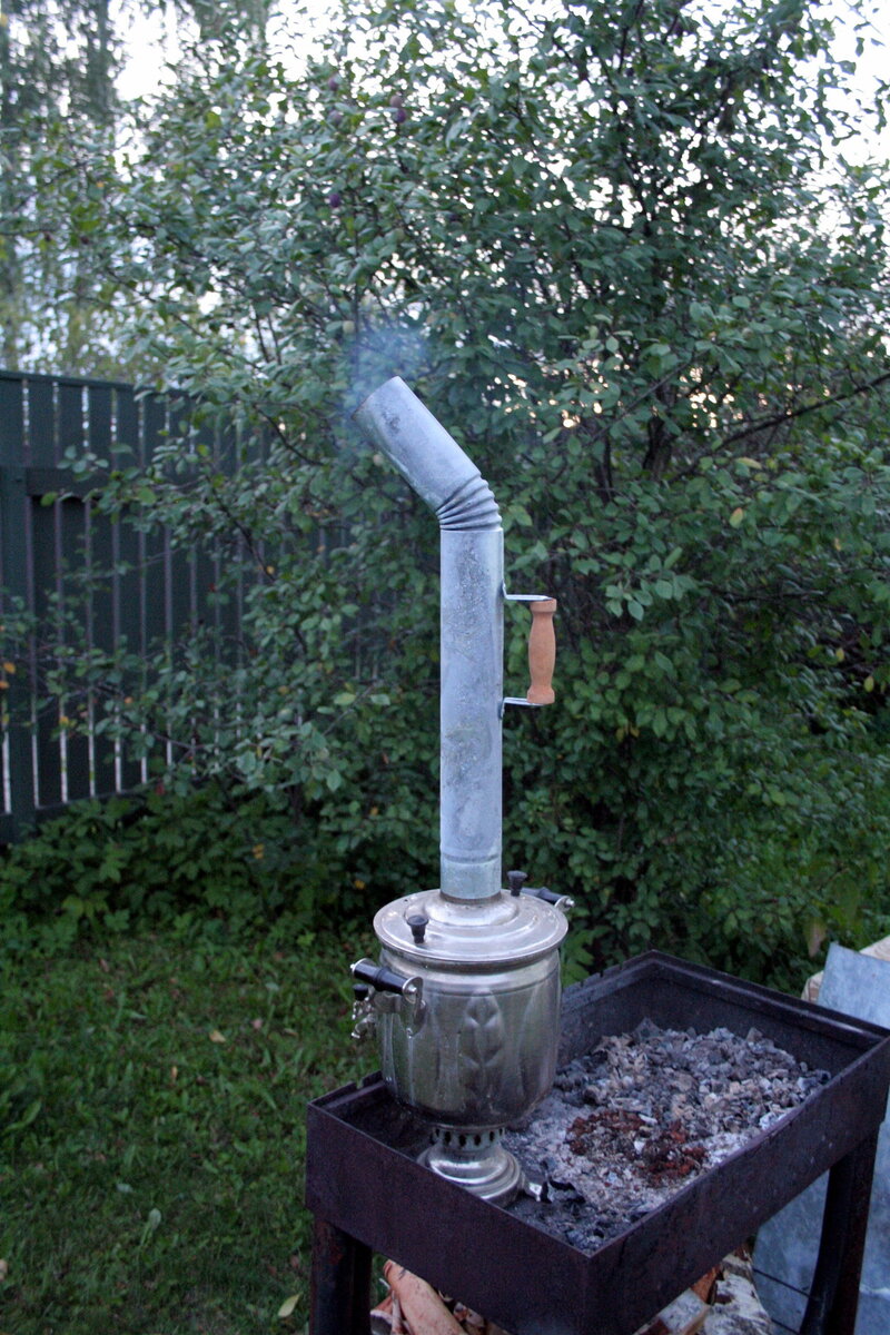 В выходные устроили с семьей чаепитие, муж заварил самовар. Я давно обещала показать фотографию трубы, а все потому, что эту трубу я привезла из поездки в Вятку в начале лета!