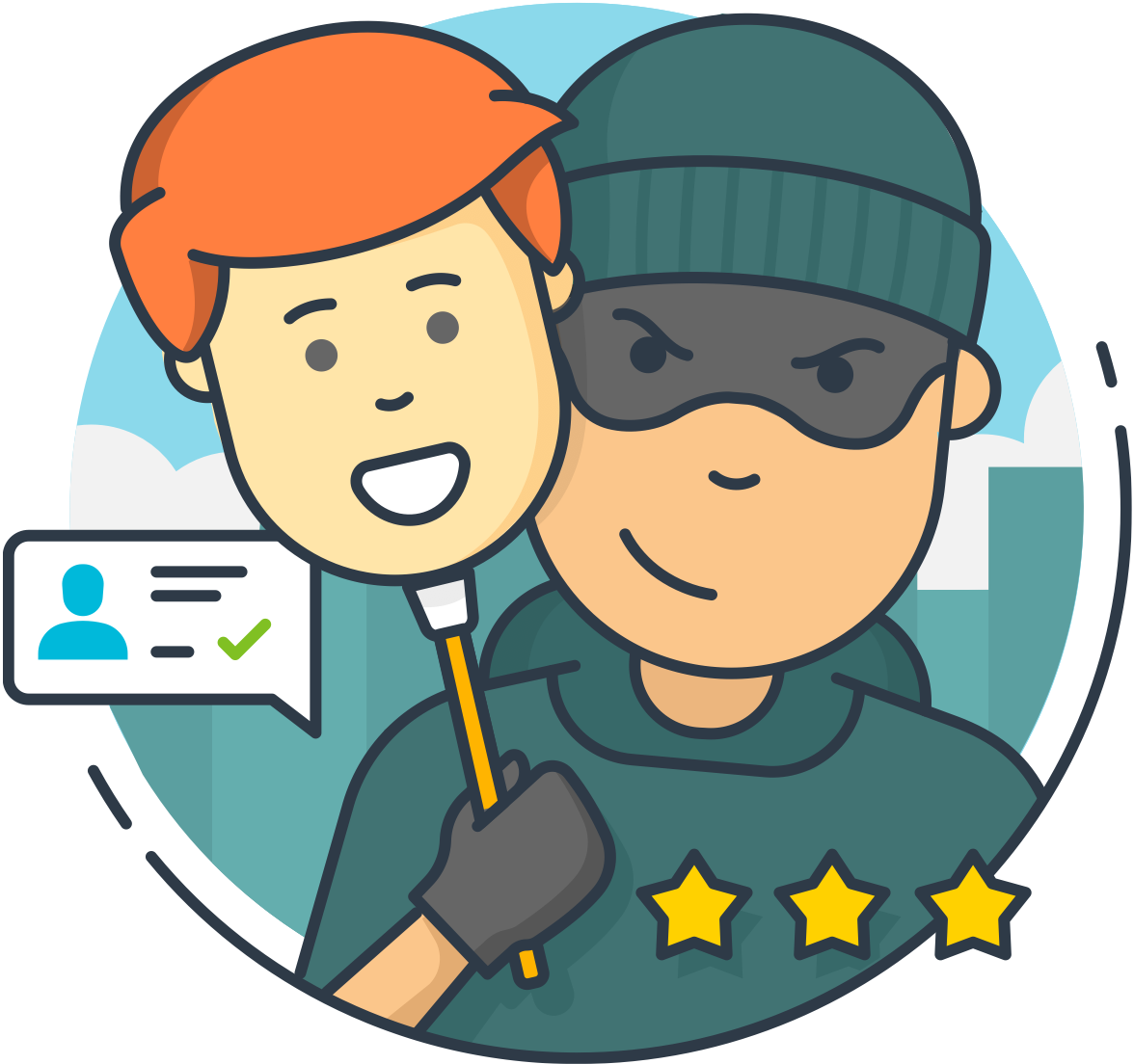 3. Перед входной дверью в офис стоял огромный молодой человек с устрашающей внешностью, покоцанными кулаками и ссадинами на лице (это был охранник, которой следил за тем, чтобы вторично в офис никто не проник);