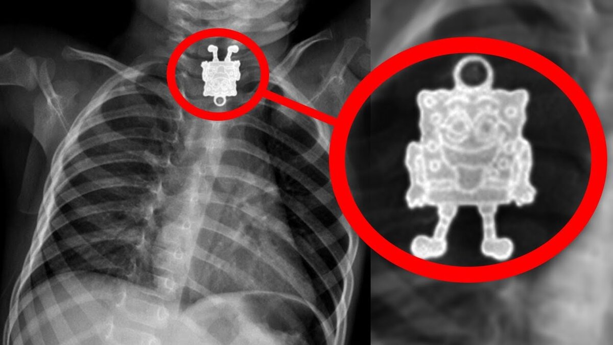Все любят губку боба квадратные штаны, и взрослые и дети. Неудивительно, что во многих домах на полу разбросаны фигурки персонажей мультика. Мы уверены, что Боб живет на дне тихого океана как и все его друзья, но иногда судьба может забросить бедолагу и в менее очевидные места. Одному из докторов довелось увидеть нечто на рентгеновском снимке своего пациента. Родители привели 16-месячного малыша к врачу, боясь, что он мог съесть что-то, что не нужно было есть. На снимке все выглядит как в фотошопе, очень уж четко видно фигурку. Она прям смотрит в упор на врача, которому придется ее вынимать. Это была часть ожерелья, которую малыш смог оторвать.