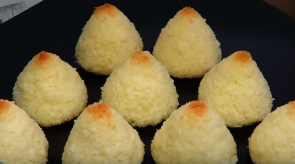 Для любителей кокоса, этот рецепт просто находка! Печенье получится нежное и безумно вкусное. Для приготовления потребуется всего 3 ингредиента: Кокосовая стружка 250 гр Яйца 3 шт Сахар 150 гр Соли щепотка В миску разбиваем яйца, добавим сахар и соль и взбиваем миксером до побеления массы и растворения сахара. Теперь всыпаем кокосовую стружку и перемешиваем. Если яйца были крупные, возможно нужно будет добавить немного стружки. Пусть тесто постоит 10-20 минут, чтобы кокосовая стружка набухла. Начинаем лепить печенье, столовую ложку теста скатываем в шарик или формируем из него конус, можно при этом положить внутрь орешек по желанию. Выкладываем печенье на застеленный пергаментом противень. Ставим в разогретую до 180 градусов духовку на 15-20 минут, печенье не должно сильно подрумяниваться. Вот печенье и готово! Оно очень вкусное, очень ароматное, нежное, слегка влажное внутри. Просто райское наслаждение к чаепитию! Приятного аппетита!