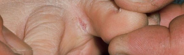 При запущенном процессе образуются трещины в межпальцевом пространстве.