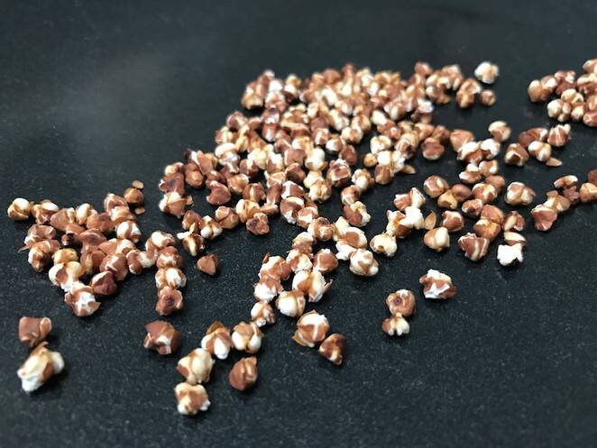 Вы думаете, что попкорн – излюбленное лакомство взрослых и детей – можно приготовить только из кукурузы? Ошибаетесь! Любое цельное зерно реагирует на нагревание схожим образом, а значит – приготовить попкорн можно из гречки, полбы, риса, киноа или амаранта. Особенность состоит в том, что небольшие зерна не «выворачиваются наизнанку» полностью, как кукуруза – но нагреваются, раздуваются, становятся хрустящими и очень вкусными! Попробуйте сами – вытаскивайте из кухонных шкафов все крупы, которые есть у вас дома и начнем наш эксперимент! Нет ничего проще, чем приготовить попкорн – просто возьмите глубокую сковороду или кастрюлю. Вам даже не нужно масло – если вы не хотите делать попкорн с маслом. Самое главное – хорошо разогреть кастрюлю, добиться того, чтобы капля воды, капнутая на поверхность, моментально начинала шипеть и испаряться. Удалось этого добиться? Отлично! Значит, можем приступать к готовке!