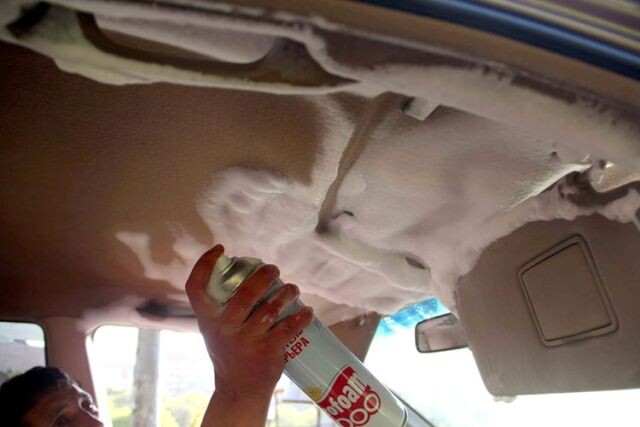 Глушим машину, на все время химчистки извлекаем ключ из замка зажигания. Придется потерпеть без автомобильной аудио системы, замыкания нам не нужны! Полностью разгружаем автомобиль. Не забываем опустошить багажник! Приступаем к первичной сухой уборке. Достаем половики и коврики Убираем крупный и мелкий мусор в салоне, а затем тщательно пылесосим. В тех местах, куда не может пролезть щетка от пылесоса, можно использовать воздушный компрессор, который выдует пыль, грязь и мусор из всех щелей. Для получения идеально чистого пола лучше снять все сидения в салоне. Сидения пылесосим, панели протираем сухой тряпкой. Для удобства делим его на четыре-пять зон. Тщательно встряхивая баллон с Profoam 4000 полностью покрываем пеной выбранный участок, не оставляя пробелов. Ждем несколько минут, пока средство вытянет грязь и аккуратно убираем его чистой, сухой салфеткой Химчистка сидений: Первичную общую очистку проводим с помощью Profoam 4000 . Распыляем Profoam 2000 на проблемный участ