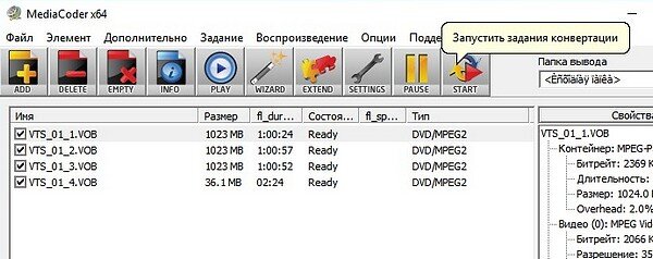 Недавно я обнаружил дома аналоговую видеокассету со школьного выпускного. Нашел фирму, которая оцифровывает видео, получил DVD. Еле-еле отыскал на одном из рабочих компьютеров DVD-привод, скопировал папку с видео на компьютер. Внутри три файла на 1 Гб и довесок в 30 Мб. Осталось найти программу, которая превратила бы четыре файла формата .VOB в удобоваримый .AVI или .MP4.