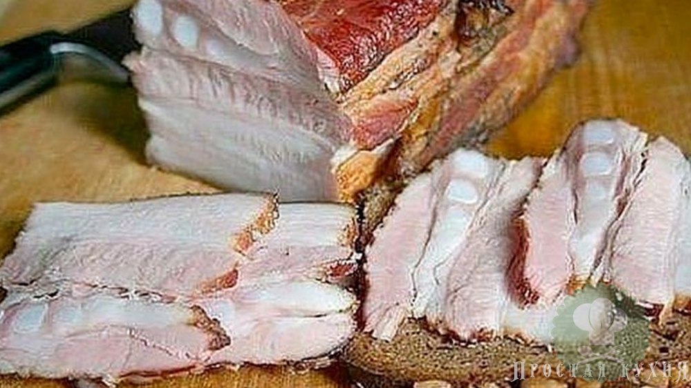 Доброе время суток, представляю вашему вниманию обалденный рецепт горячего засола домашнего сала - это настоящий деликатес. Особенно если выбрать сало с прожилками мяса, ммм вкуснятина. Ингредиенты: 1 литр воды 1 кг. сала с прослойками мяса луковая шелуха, примерно трех луковиц 2 лаврового листа 7-8 зубчиков чеснока 200 грамм соли 2 ст.л. сахара черный перец по вкусу Как готовить: 1. В большую кастрюлю наберите воду, добавьте соль, сахар, лавровый лист, шелуху и ставим на огонь (не жадничайте с луковой шелухой, она нужна для красивого копченого цвета). 2. Как только вода закипит положите в нее сало, варите 20 - 30 минут. Уберите кастрюлю с огня и оставьте сало мариноваться в отваре 8 - 10 часов. 3. Достаньте сало из отвара и положите на бумажное полотенце подсушится. В это время порежьте чеснок тонкими пластинами, смешайте с молотым черным перцем. 4. Оботрите сало бумажным полотенцем, если необходимо. Щедро обваляйте его в полученной смеси перца и чеснока со всех сторон. Заверните сало