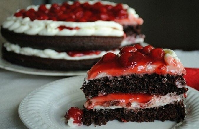 1 банка вишни в густом соусе (начинка для пирогов) Рецепт приготовления вишневого сливочного торта «Подружка»: