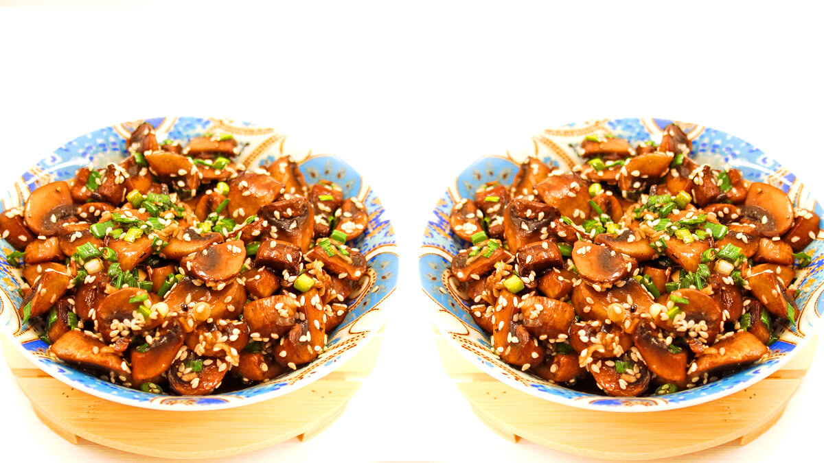 Примерно в середине обжаривания (середина обжаривания зависит от степени, до которой вы решили обжарить грибы) сдабриваем грибы соевым соусом. Так, чтобы хорошенько их просолить.