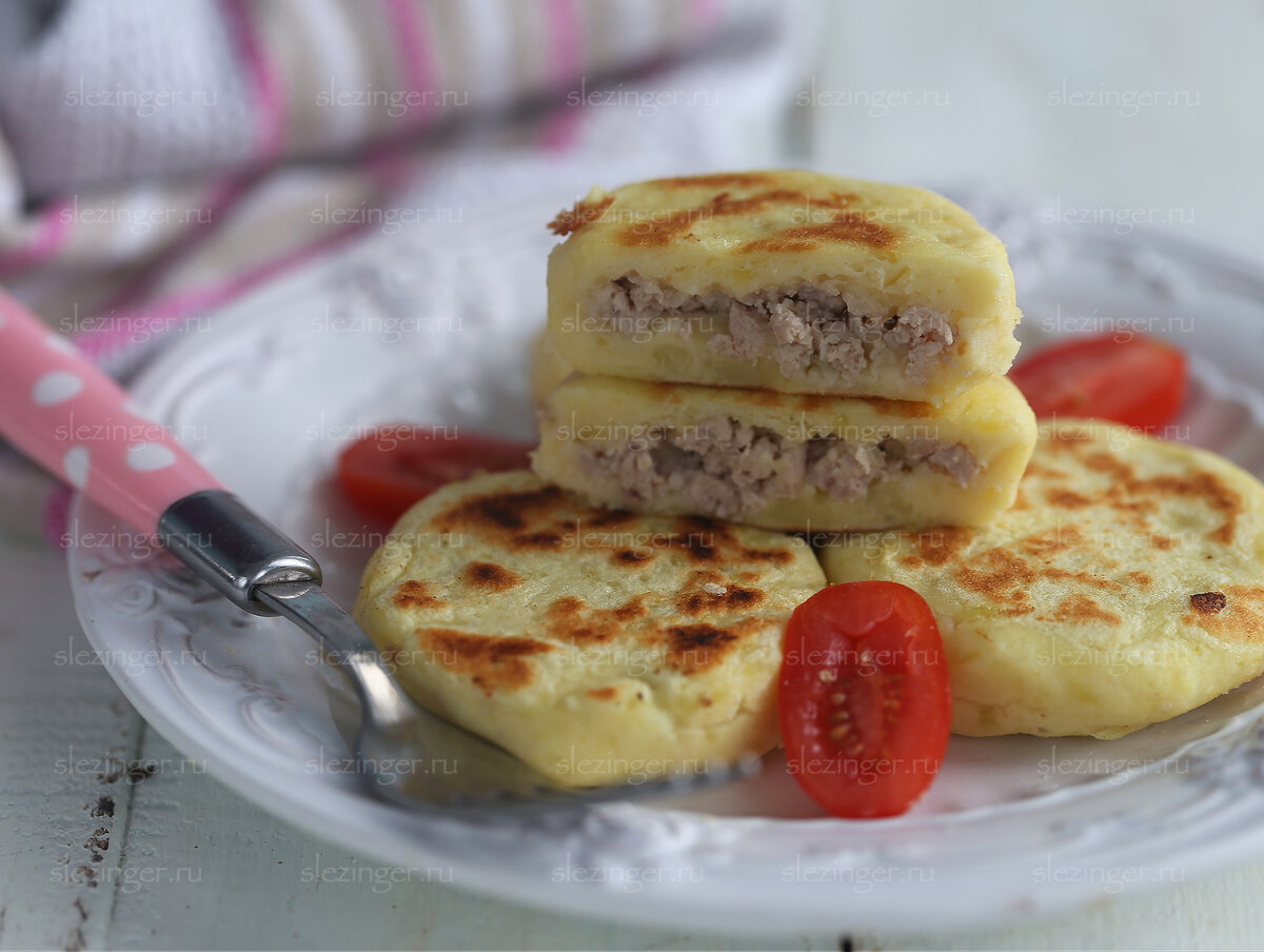 Зразы - это блюдо литовской, польской кухни, представляет собой мясную котлету с начинкой. А в еврейской кухне зразы готовят из картофеля с мясной начинкой внутри. Славящиеся своей экономностью еврейские хозяйки сначала варили из мяса суп, потом мясо перемалывали в мясорубке, смешивали с жареным луком и заворачивали в картофельное тесто. Есть еще зразы вегетарианские, их готовили с начинкой из жареных грибов с луком – те же драники, только лучше. Я приготовила зразы с фаршем из индейки (можно взять куриный или из постной говядины), и несколько штук с грибами. Это безумно вкусно. Из уакзанного ниже числа ингредиентов у меня получилось 10 штук зраз. Калорийность одной картофельной зразы с мясом составляет около 90 ккал. С грибами будет чуть меньше. Ингредиенты: