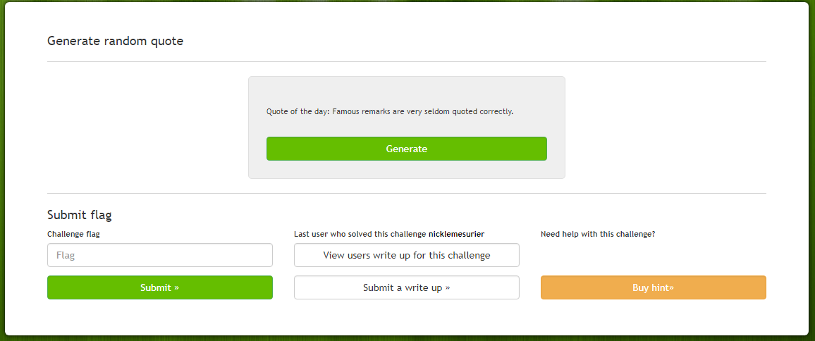 Хорошая новость тут в том что это работает, а плохая в том что среди цитат не оказалось флага (но наверно это было бы слишком легко для задания за 4 очка).