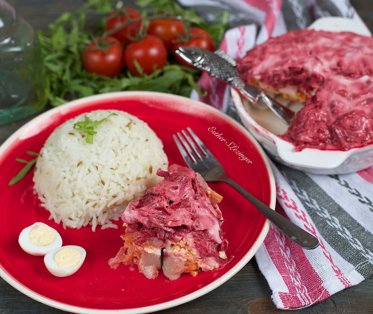 Честно говоря, я раньше никогда не любила этот салат, я его, кажется, пробовала всего один раз. Но сегодня почему-то захотелось именно селедки под шубой. И, конечно, только полезный вариант, соответствующий правильному питанию. Салат получился вкусный и сытный и в сочетании с рисом стал отличным обедом. Калорийность диетического салата Селедка под шубой на 100 гр. составляет: примерно 100 ккал. Пищевая ценность: белки: 8 гр., жиры: 4,9 гр., углеводы: 5,7 гр. Ингредиенты: