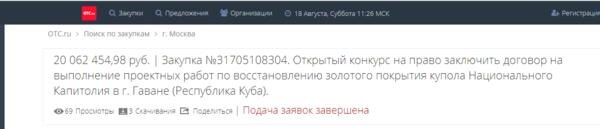 Как сообщали СМИ, после того, как пару лет назад Россия простила Кубе 29 млрд. долларов долга, планируется очередное выделение денег Гаване. Сумма, которую выделят из российского федерального бюджета на реконструкцию купола Капитолия в Гаване, состовляет 642,5 миллиона рублей, восстановительные работы начнутся уже в августе этого года. Житель Астрахани Алексей Сармин обратился с Заявлением в Генеральную Прокуратуру Российской Федерации относительно законности действий по растрате бюджетных средств, которые пойдут на реконструкцию Гаванского Капитолия, озадачившись тем фактом, что озвучившая решение России помочь Кубе с ремонтом Капитолия спикер Совета Федерации Валентина Матвиенко аргументировала выдление средств простой просьбой кубинских парламентариев. Заявление в он опубликовал в Facebook: А давайте узнаем, что там за законные основания для реконструкции Капитолия в Гаване за наш счёт? Для чего закинем заявление в Генпрокуратуру. А то вдруг под шумок уже провели референдум по в
